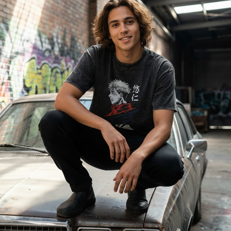 Vintage-Washed Anime Graphic T-Shirt — bold retro graphics, soft premium cotton, and a relaxed fit made for everyday streetwear.